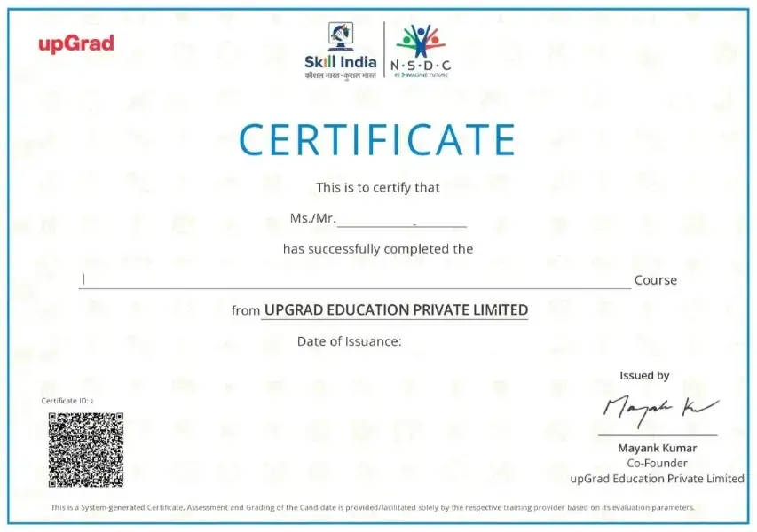 Learners will receive an NSDC certification upon completion that is nationally recognized and aligned with industry standards and enhancing employability
